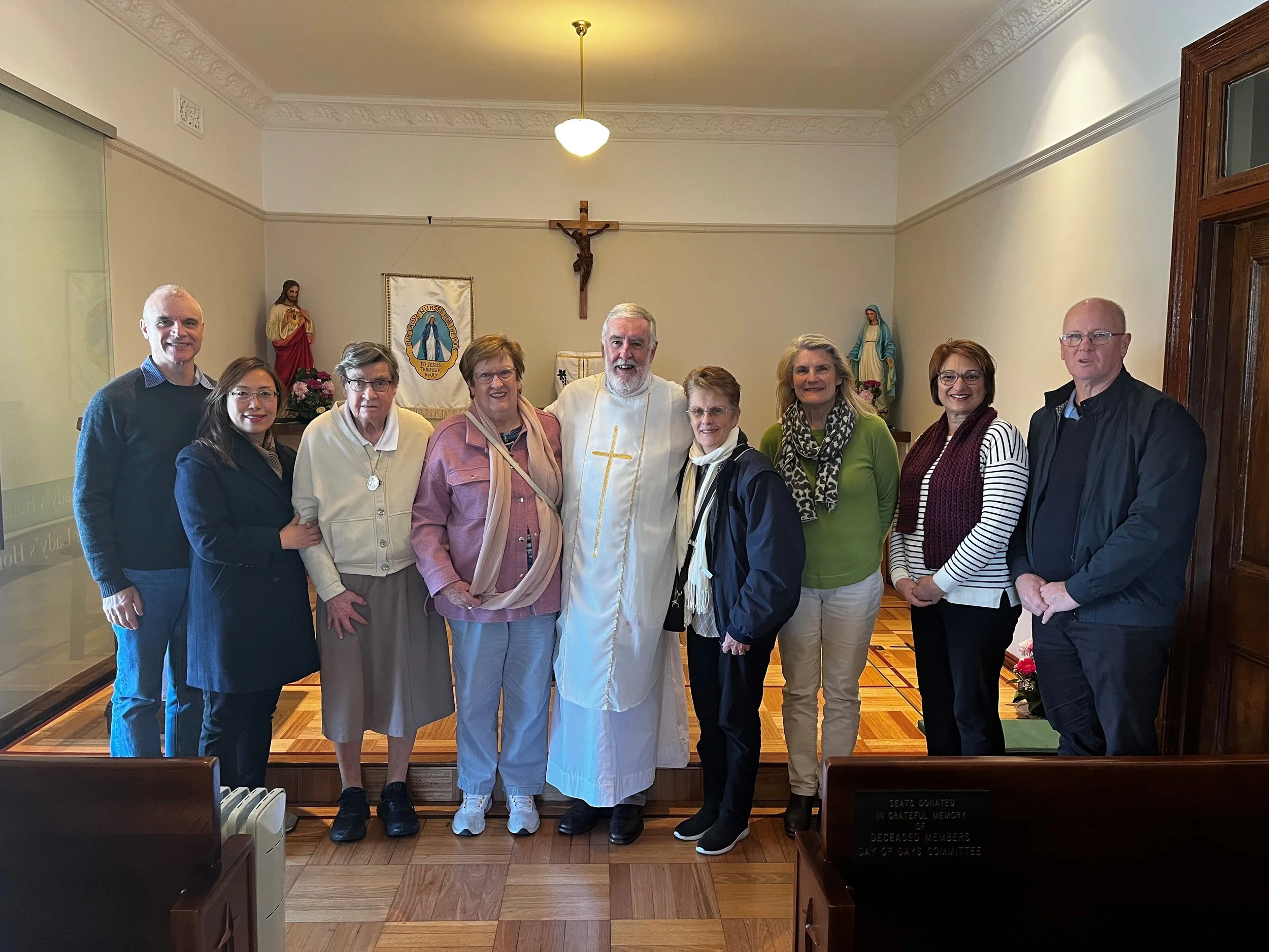 On 15 July 2000, Fr John was ordained by Archbishop Pell. Twenty-five years later, to honour that date, Fr John celebrated Mass at Cardinal Pell’s tomb at St Mary’s Cathedral. The next day he came to Our Lady’s Home and celebrated Mass. He was joined by Sr Pat, two of his sisters, Mary and Bernadette, his best mate from school Steve and his wife Chrissy who came down from Mackay especially to be part of the celebrations as well as Sydney friends.